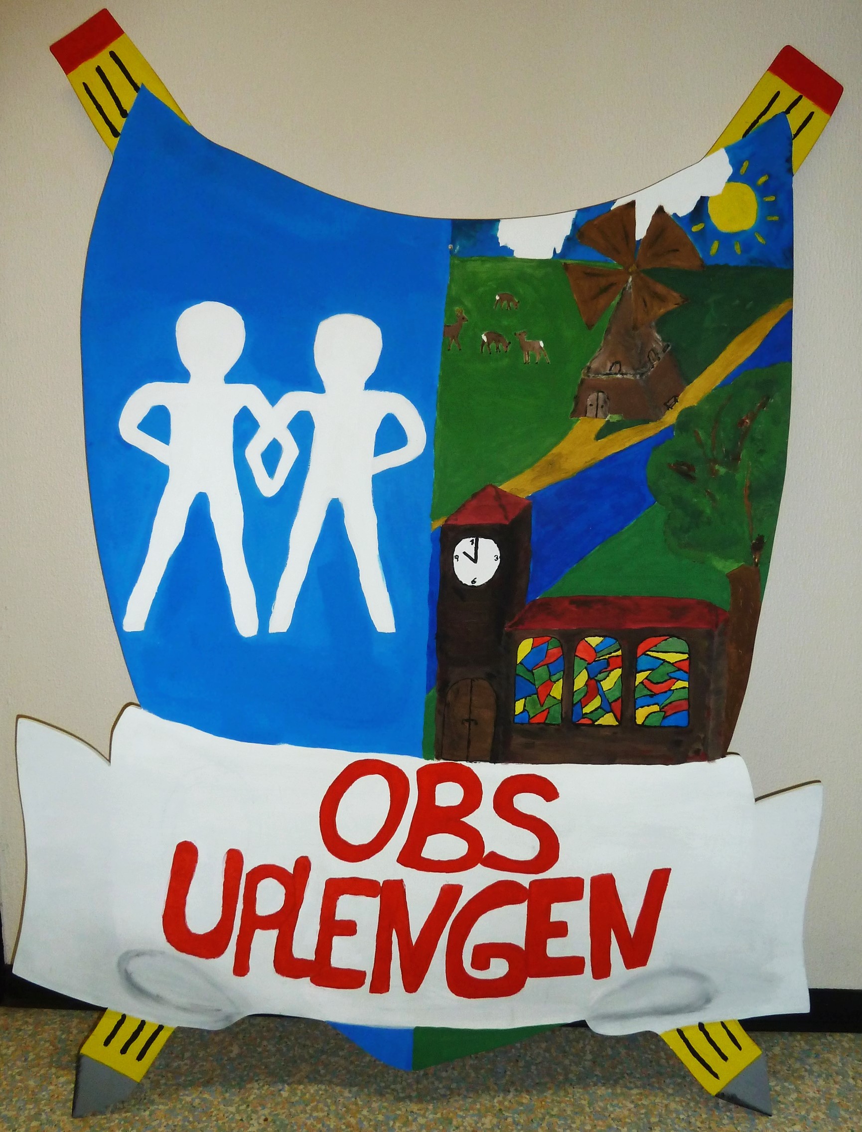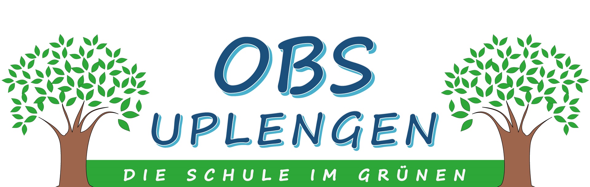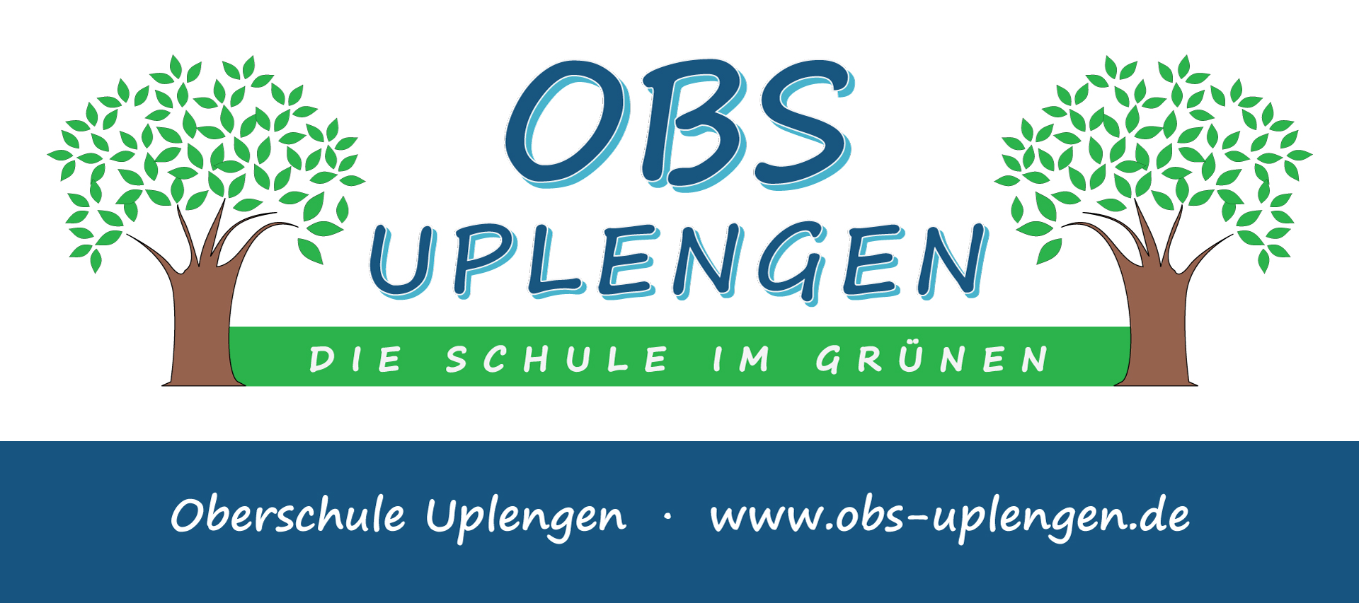 Die beiden Bäume symbolisieren die grüne Umgebung, in der sich die OBS Uplengen befindet. Die Schule liegt am Höst, einem Waldgebiet in Uplengen. Der Schriftzug "Die Schule im Grünen" unterstreicht die idyllische Lage der Oberschule. Ein äußerst seltener Schulstandort - im Vergleich zu anderen Schulen.