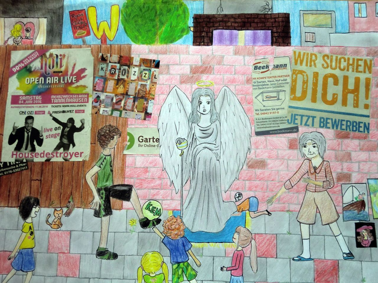 Kunst2 webAuch Aktionen zu besonderen Anlässen finden an der Oberschule Uplengen statt: Die von den Schülerinnen und Schülern farbenfroh gestalteten Spundwände, die im Foyer der Schule zu sehen sind, wurden anlässlich der Landesgartenschau in Papenburg angefertigt, wo auch einige der Spundwände ausgestellt waren.
