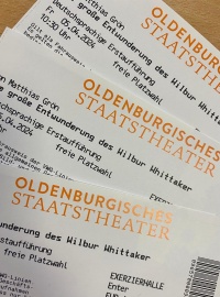 Am 5. April besuchte der 5. Jahrgang das Oldenburgische Staatstheater und schaute sich in der Exerzierhalle das Theaterstück "Die große Entwunderung des Wilbur Whittaker" an. Dieser Besuch fand im Rahmen des ENTER-Programms statt - ein Kooperationsprogramm zwischen dem Staatstheater Oldenburg und Schulen in und im Umland von Oldenburg. So ist auch unsere Schule Teil des Programms, das Theater als einen Bildungsort erfahrbar macht. Nach diesem gelungenen Stück freuen wir uns schon auf unseren nächsten Besuch im Staatstheater!
