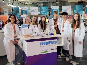 Vom 8. – 16.06.24 fand auf dem Messegelände in Hannover die IdeenExpo statt. Da wir den Wettbewerb „Ideenfang“ der Stiftung NiedersachsenMetall gewonnen hatten, durften wir 9 Tage lang unser ChemUp-Labor vielen Hunderten Besuchern präsentieren und sie zum Experimentieren an unsere vier Stationen „Verbrennung, Brandbekämpfung, Kohlenstoffdioxid und Salze“ einladen. Statt Grundschulkindern das Experimentieren näherzubringen, standen nun Kindergartenkinder, Lehrkräfte, Senioren, Chemie-Leistungskursschüler/innen, Familien mit Kindern, Landtagsabgeordnete, Pressevertreter, Fotografen usw. vor unseren ChemUp-Schüler/innen, staunten über die Staubexplosion und beneideten unsere Schule um das ChemUp-Labor.