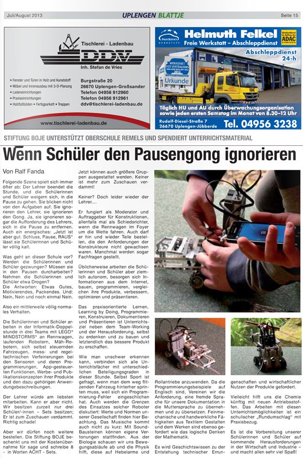 Weitere Informationen finden Sie in den Artikeln des Uplengener Blattje: